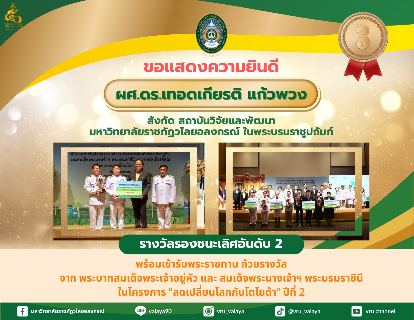 วิจัยและนวัตกรรมพร้อมเงินรางวัล 70,000 บาท และเกียรติบัตร