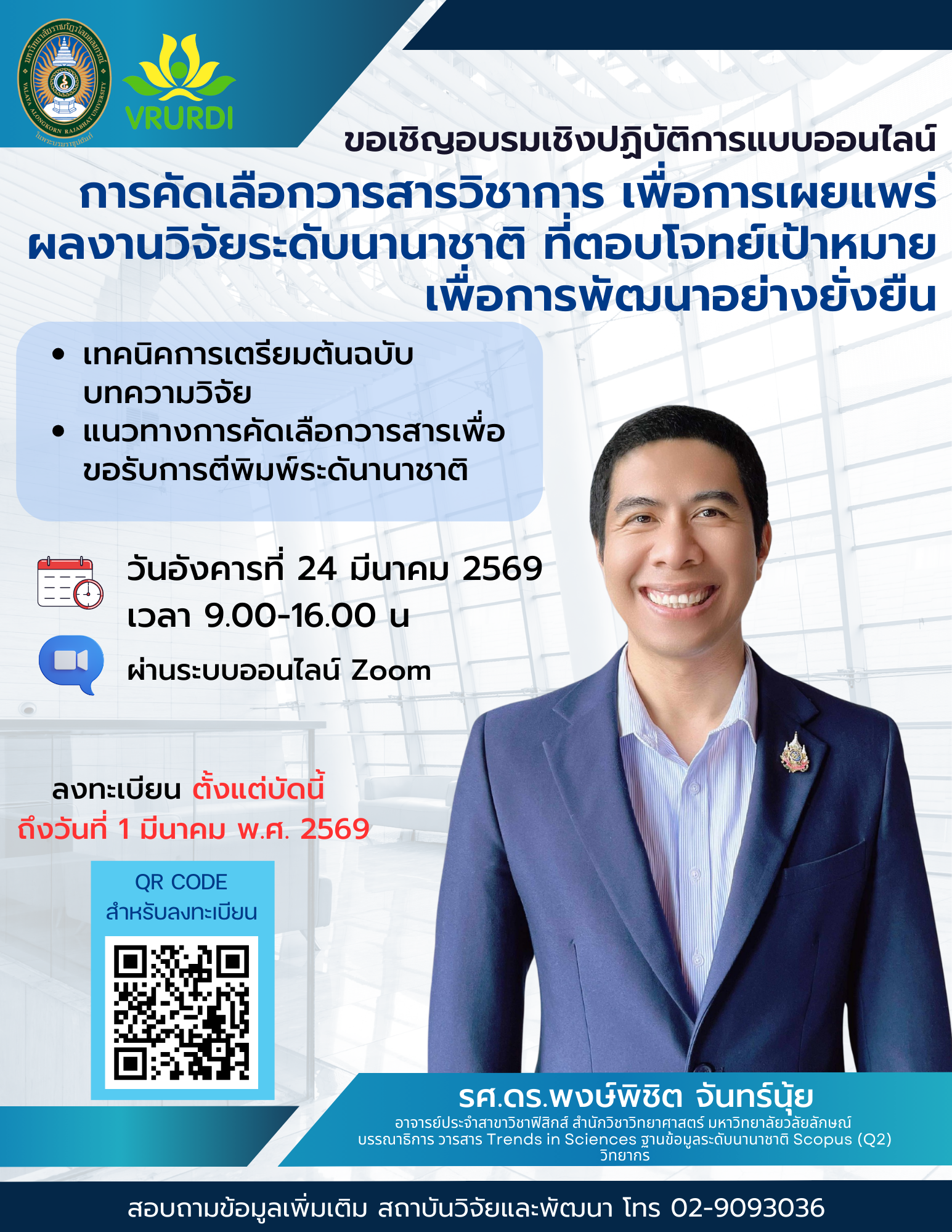 อบรมเชิงปฏิบัติการแบบออนไลน์ “การคัดเลือกวารสารวิชาการ
