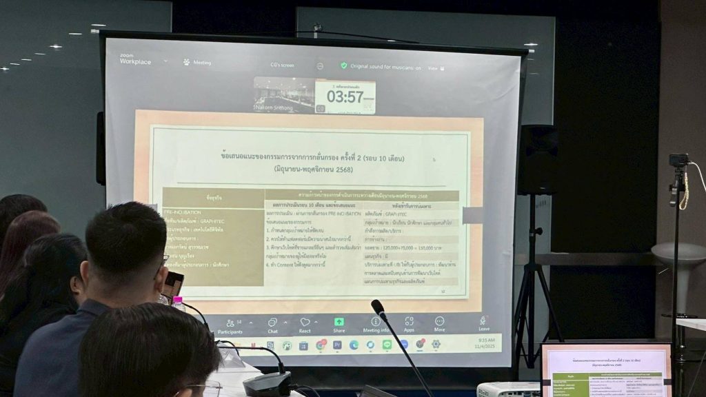และผู้ที่เกี่ยวข้อง เข้าร่วมประชุมติดตามประเมินผลการปฏิบัติงานครั้งที่ 2 (รอบ 10 เดือน) โครงการหน่วยบ่มเพาะวิสาหกิจในสถาบันอุดมศึกษา (UBI) เครือข่ายภาคกลางตอนบน ปีงบประมาณ พ.ศ. 2568 (TOR 2568-2569)
