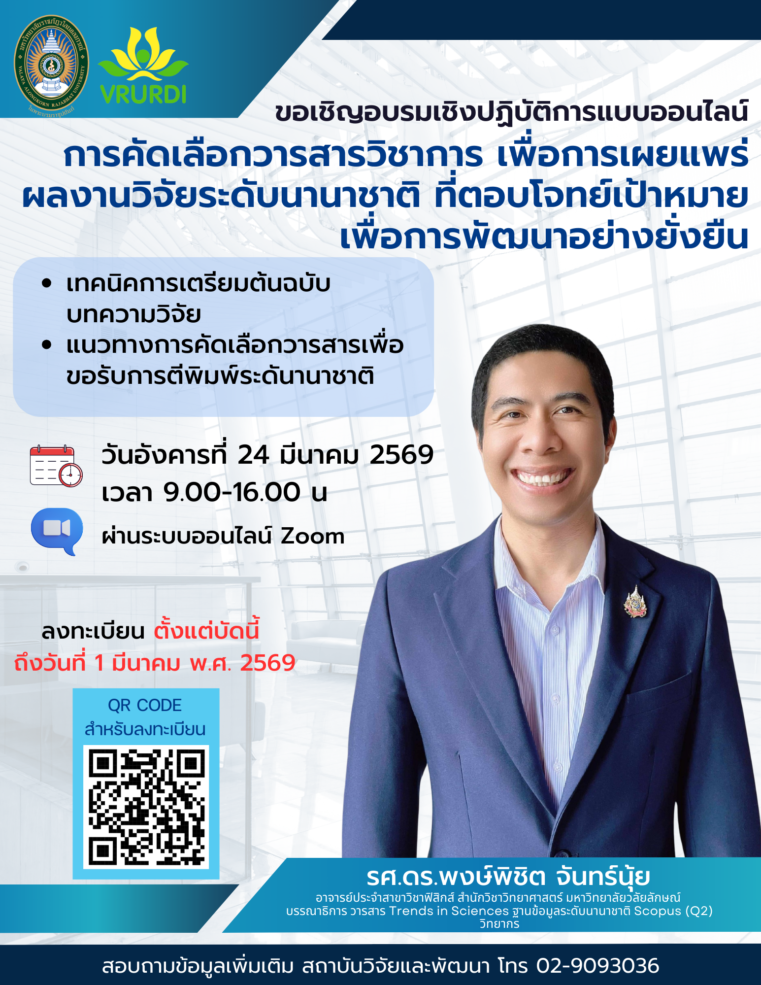อบรมเชิงปฏิบัติการแบบออนไลน์ “การคัดเลือกวารสารวิชาการ เพื่อการเผยแพร่ผลงานวิจัยระดับนานาชาติ ที่ตอบโจทย์เป้าหมายเพื่อการพัฒนาอย่างยั่งยืน”
