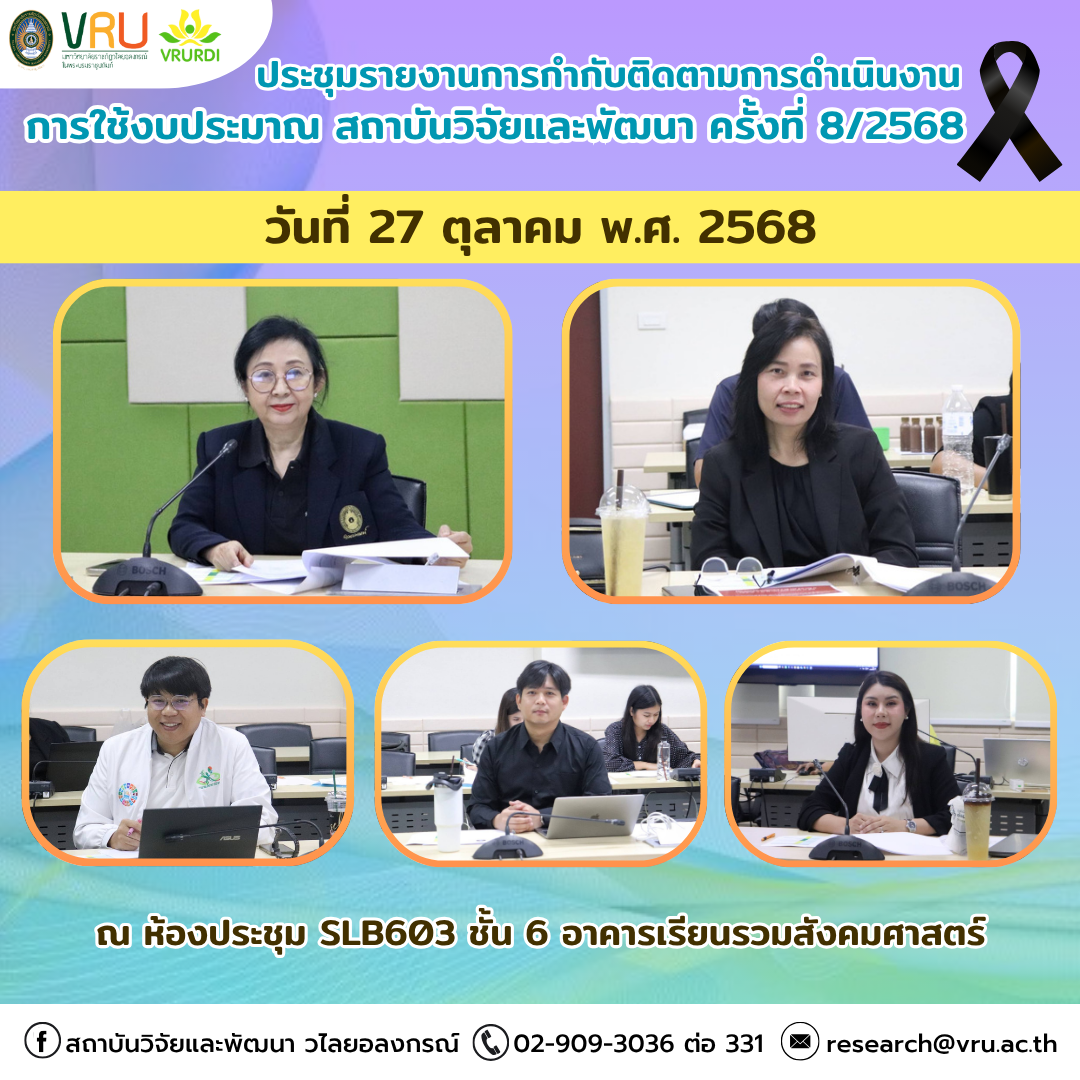 ประชุมรายงานการกำกับติดตามการดำเนินงานและการใช้งบประมาณ สถาบันวิจัยและพัฒนา ครั้งที่ 8/2568