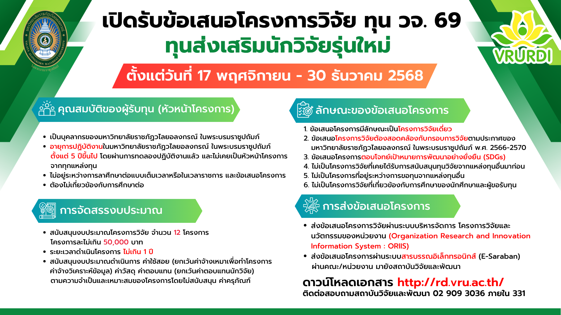 เปิดรับข้อเสนอโครงการวิจัย (ทุน วจ.)