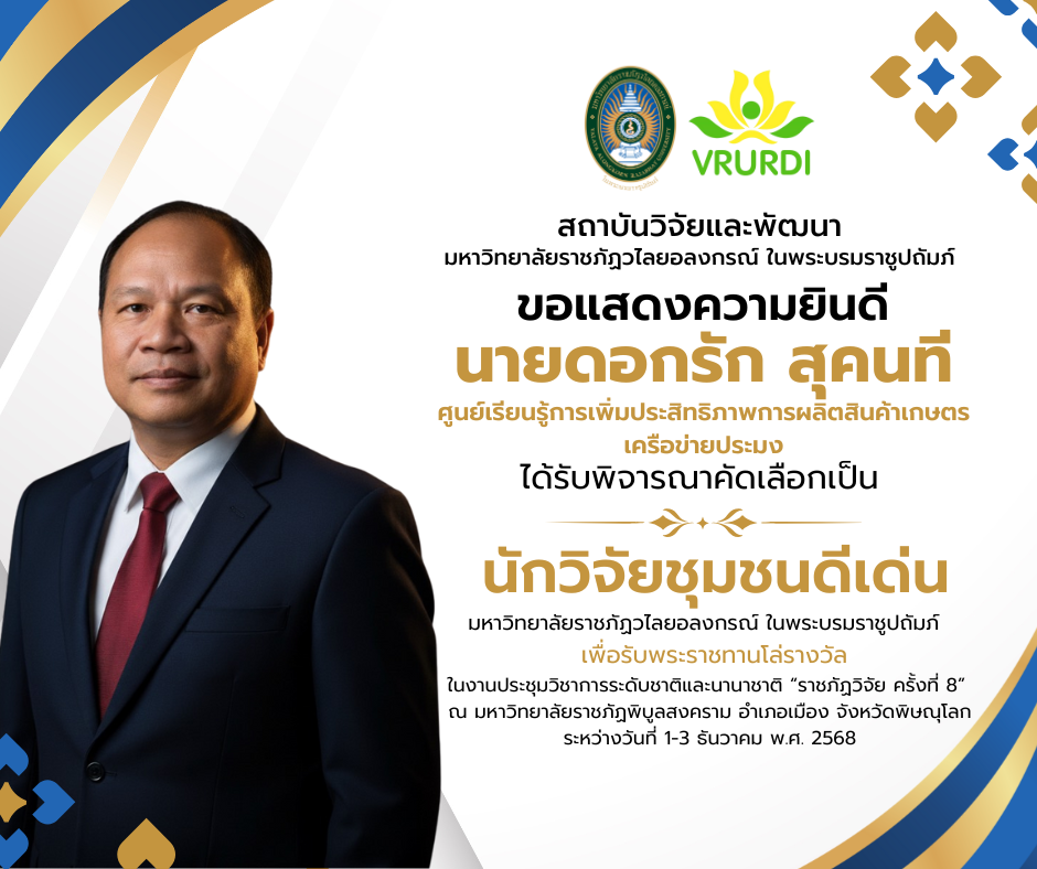 ขอแสดงความยินดี นักวิจัยดีเด่น นักวิจัยชุมชนดีเด่น